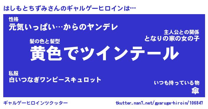 | 女子向けラノベタイトル風あだ名 | 『誰かこのはしもとちずみを説明してください! ~契約から始まるウェディング~』 |