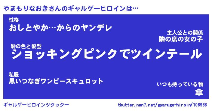 | 女子向けラノベタイトル風あだ名 | 『(仮)やまもりなおきのやんごとなき事情』 |