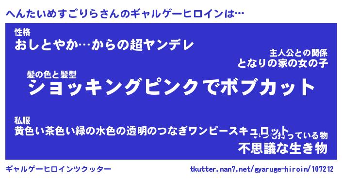 | 胡散臭い通販商品みたいなあだ名 | 『必ず成功するブレスレット…その名も「へんたいめすごりら」』 |