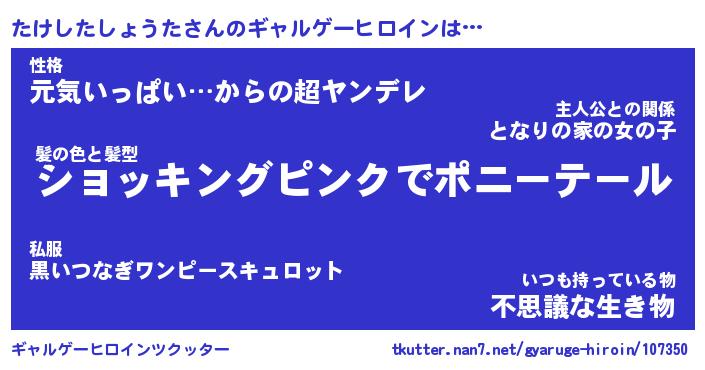 | ヘコむあだ名 | 『たけもー』『なまこ酢』『たけっ子』 |