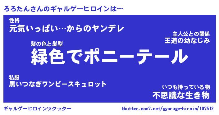| ヘコむあだ名 | 『ろろにー』『なまこ酢』『ろろっぺ』 |