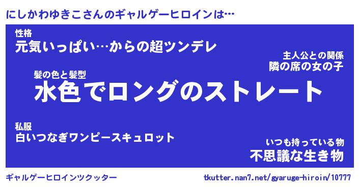 | 男性向けラノベタイトル風あだ名 | 『にしかわゆきこの憂鬱』 |