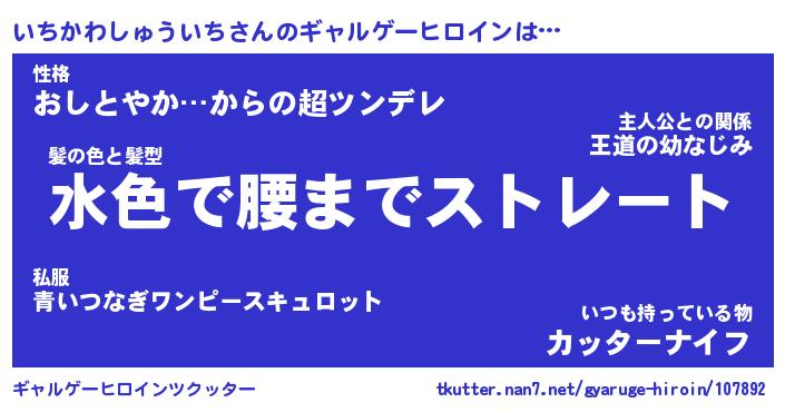 | 女子向けラノベタイトル風あだ名 | 『(仮)いちかわしゅういちのやんごとなき事情』 |