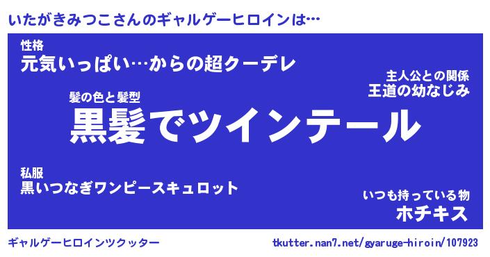 | 男性向けラノベタイトル風あだ名 | 『いたがきみつこの憂鬱』 |