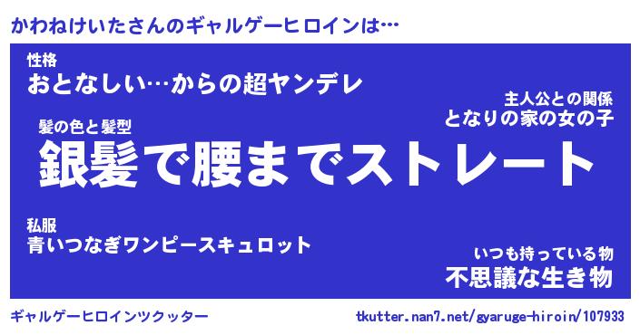 | 男性向けラノベタイトル風あだ名 | 『かわねけいたの憂鬱』 |