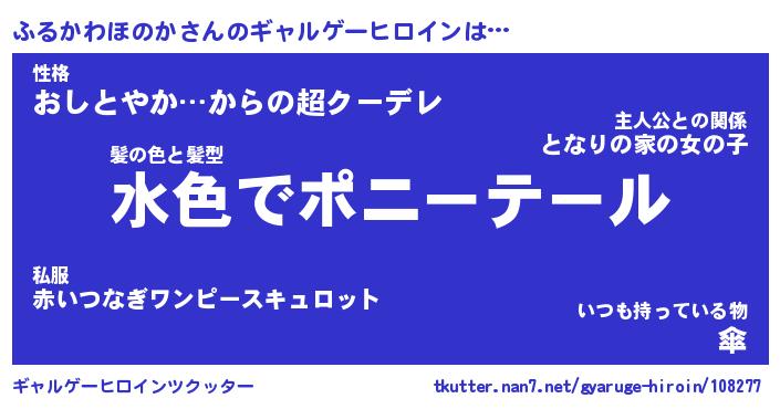 | 男性向けラノベタイトル風あだ名 | 『ふるかわほのかの憂鬱』 |