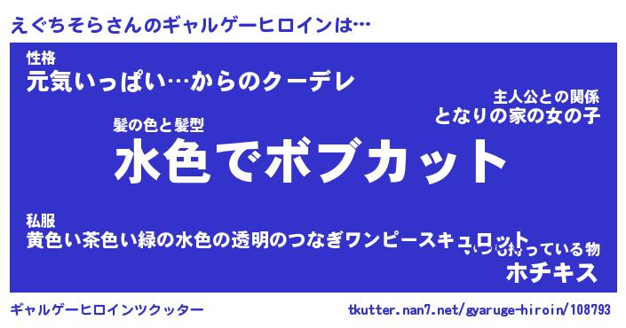 | 女子向けラノベタイトル風あだ名 | 『(仮)えぐちそらのやんごとなき事情』 |