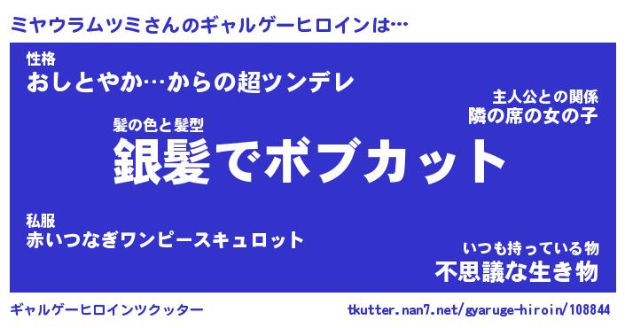 | 男性向けラノベタイトル風あだ名 | 『ミヤウラムツミの憂鬱』 |