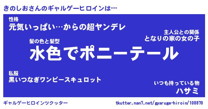 | 女子向けラノベタイトル風あだ名 | 『(仮)きのしおのやんごとなき事情』 |