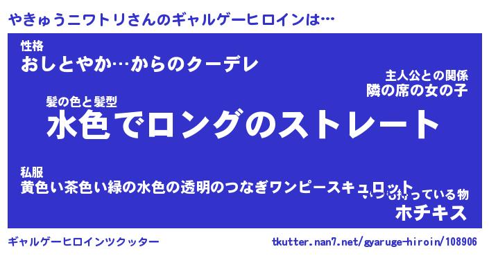 | 女子向けラノベタイトル風あだ名 | 『(仮)やきゅうニワトリのやんごとなき事情』 |