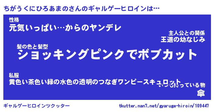 | 女子向けラノベタイトル風あだ名 | 『(仮)ちがうくにひろあまののやんごとなき事情』 |
