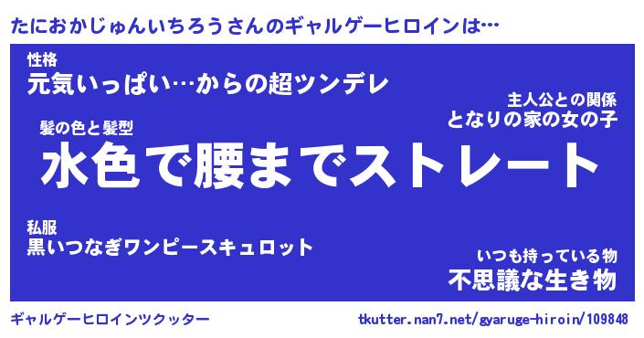 | 女子向けラノベタイトル風あだ名 | 『(仮)たにおかじゅんいちろうのやんごとなき事情』 |