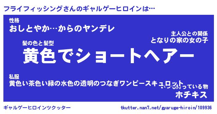 | 女子向けラノベタイトル風あだ名 | 『誰かこのフライフィッシングを説明してください! ~契約から始まるウェディング~』 |
