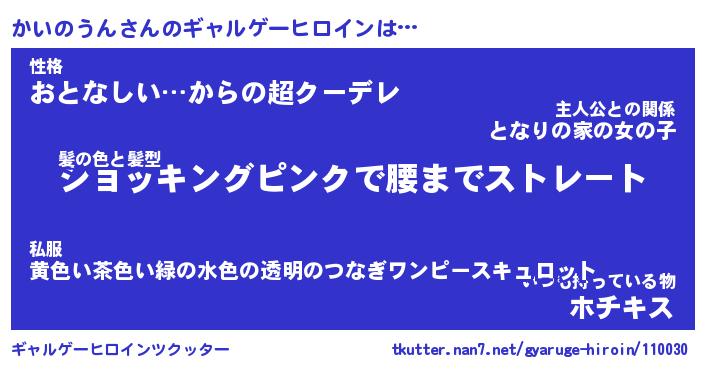 | 女子向けラノベタイトル風あだ名 | 『(仮)かいのうんのやんごとなき事情』 |