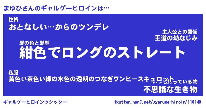 | 男性向けラノベタイトル風あだ名 | 『マユヒアートオンライン』 |