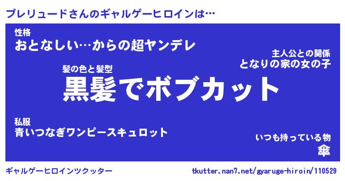 | 女子向けラノベタイトル風あだ名 | 『(仮)プレリュードのやんごとなき事情』 |