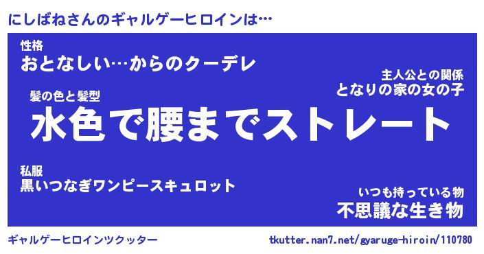 | 女子向けラノベタイトル風あだ名 | 『(仮)にしばねのやんごとなき事情』 |