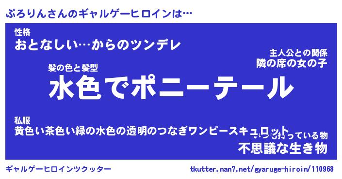 | 女子向けラノベタイトル風あだ名 | 『(仮)ぷろりんのやんごとなき事情』 |