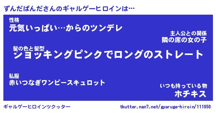 | 男性向けラノベタイトル風あだ名 | 『ずんだぱんだの憂鬱』 |
