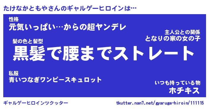 | 男性向けラノベタイトル風あだ名 | 『たけなかともやの憂鬱』 |