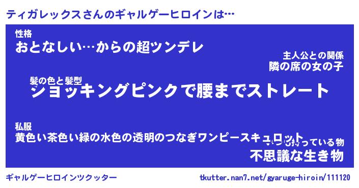 | 女子向けラノベタイトル風あだ名 | 『(仮)ティガレックスのやんごとなき事情』 |