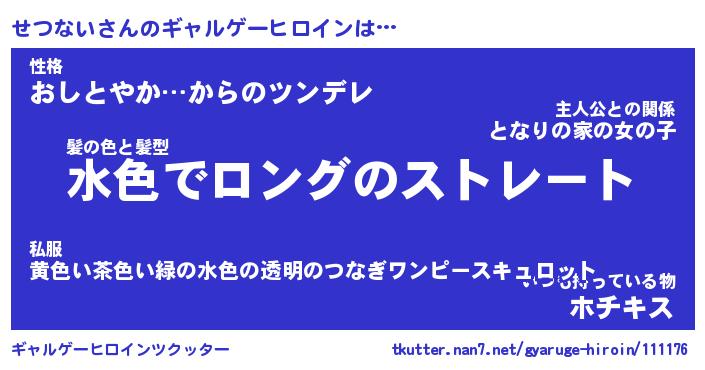 | 男性向けラノベタイトル風あだ名 | 『せつないの憂鬱』 |