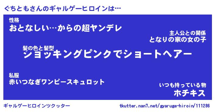 | 女子向けラノベタイトル風あだ名 | 『(仮)ぐちとものやんごとなき事情』 |