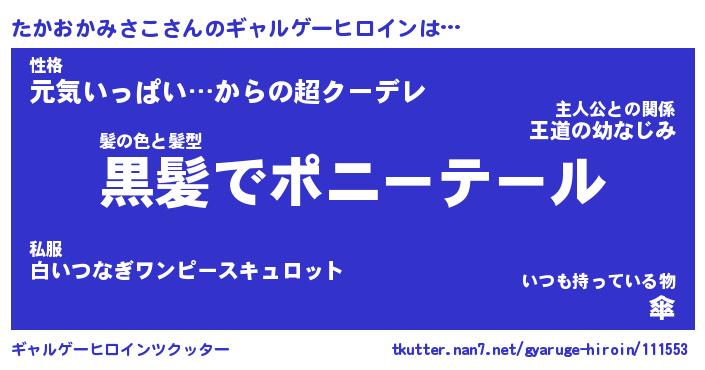 | 伝説のあだ名 | 『伝説の竜騎士たかおかみさこ』 |