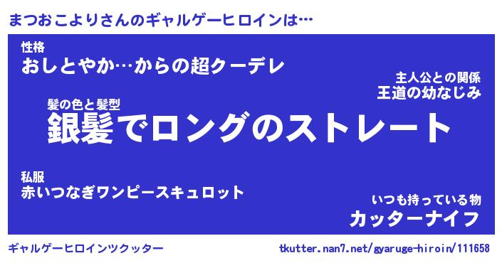 | 男性向けラノベタイトル風あだ名 | 『まつおこよりの憂鬱』 |