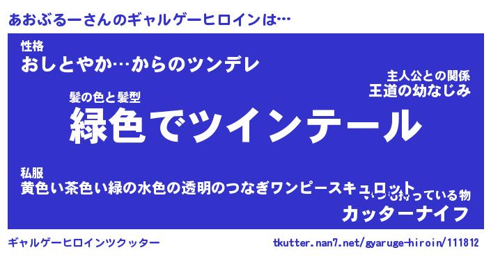 | 女子向けラノベタイトル風あだ名 | 『あおぶるー姫と円卓の騎士』 |