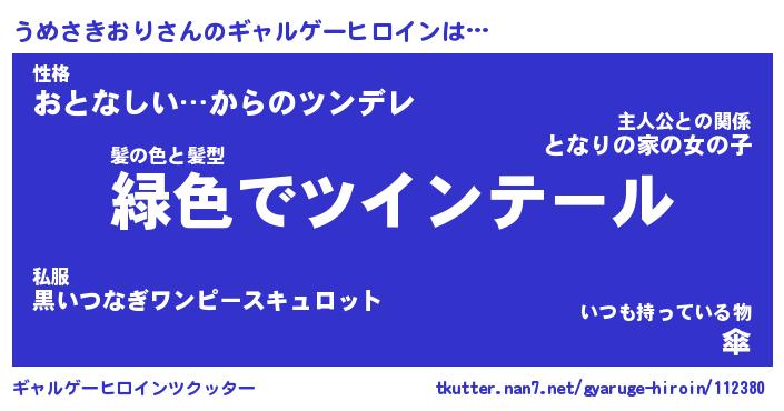 | 胡散臭い通販商品みたいなあだ名 | 『億万長者になれる水晶球…その名も「うめさきおり」』 |