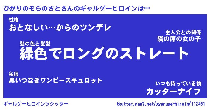 | 女子向けラノベタイトル風あだ名 | 『ひかりのそらのさと姫と円卓の騎士』 |