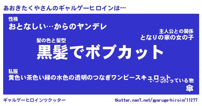 | 男性向けラノベタイトル風あだ名 | 『あおきたくやの憂鬱』 |