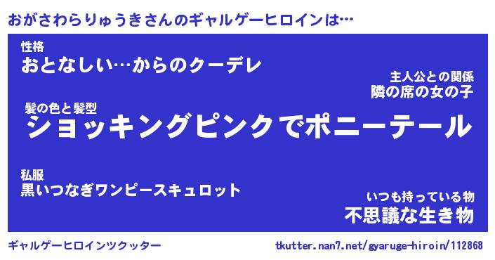| 女子向けラノベタイトル風あだ名 | 『(仮)おがさわらりゅうきのやんごとなき事情』 |