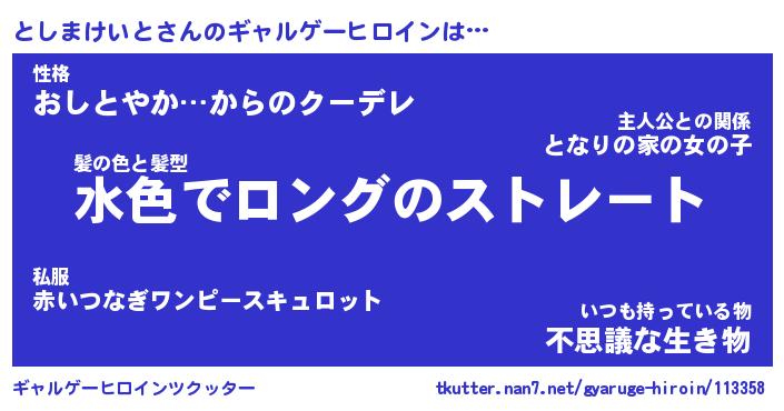 | 男性向けラノベタイトル風あだ名 | 『としまけいとの憂鬱』 |