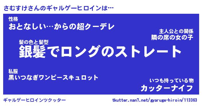| 女子向けラノベタイトル風あだ名 | 『さむすけ姫と円卓の騎士』 |