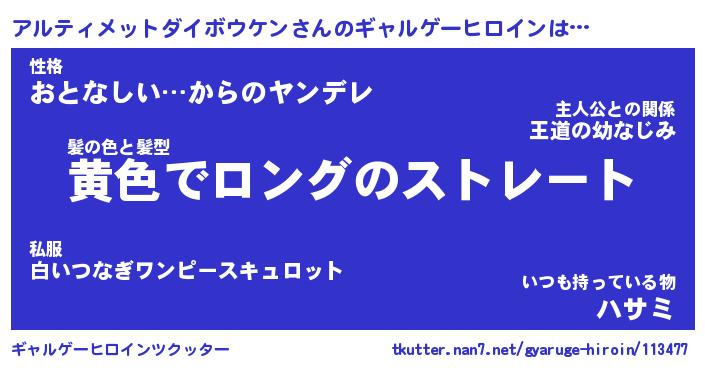 | 男性向けラノベタイトル風あだ名 | 『アルティメットダイボウケンアートオンライン』 |
