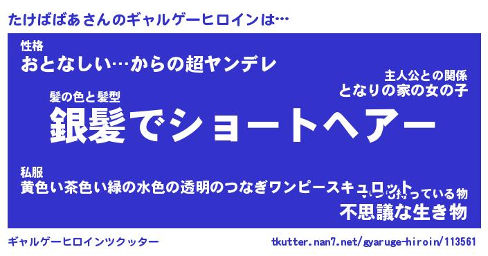 | 男性向けラノベタイトル風あだ名 | 『たけばばあの憂鬱』 |