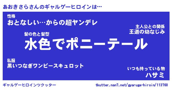 | ファンタジー風あだ名 | 『アオフェル』『エターナルアオキサラー』 |