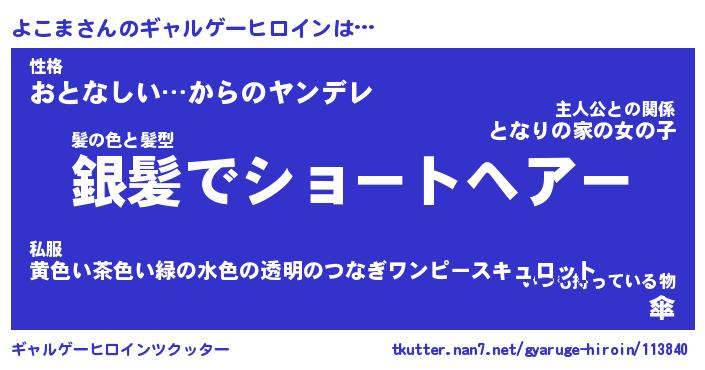 | 男性向けラノベタイトル風あだ名 | 『よこまの憂鬱』 |