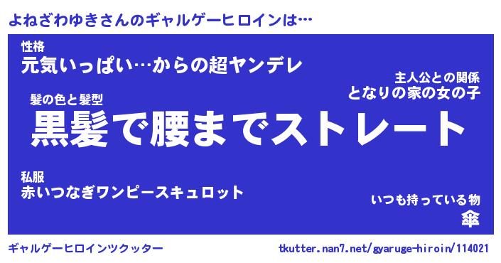 | 男性向けラノベタイトル風あだ名 | 『よねざわゆきの憂鬱』 |