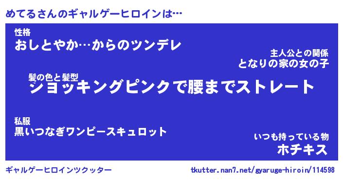 | 男性向けラノベタイトル風あだ名 | 『めてるの憂鬱』 |