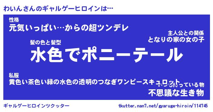 | 男性向けラノベタイトル風あだ名 | 『わいんの憂鬱』 |