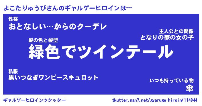 | 女子向けラノベタイトル風あだ名 | 『よこたりゅうび姫と円卓の騎士』 |