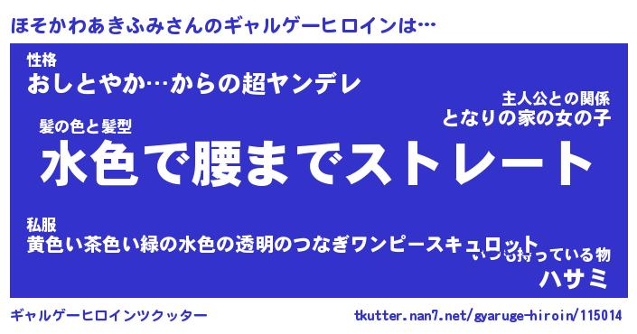 | 女子向けラノベタイトル風あだ名 | 『(仮)ほそかわあきふみのやんごとなき事情』 |