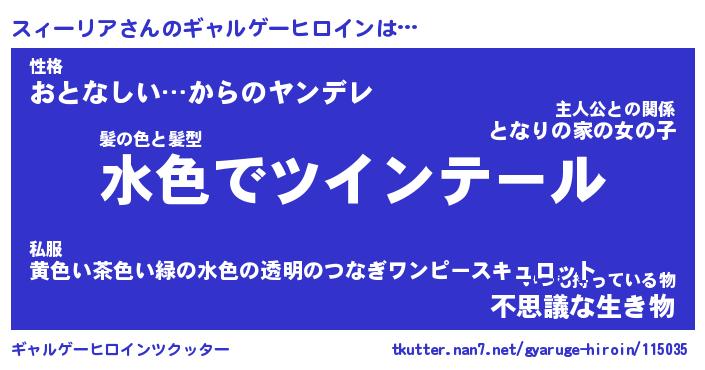 | 男性向けラノベタイトル風あだ名 | 『スィーリアの憂鬱』 |