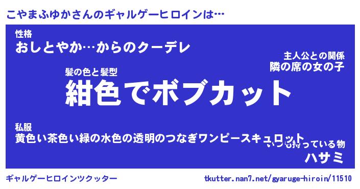| ヒーロー風カッコイイあだ名 | 『スーパーコヤマフユカ』『銀牙騎士コヤ』 |