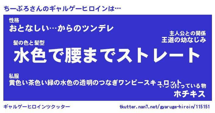 | 女子向けラノベタイトル風あだ名 | 『(仮)ちーぷろのやんごとなき事情』 |