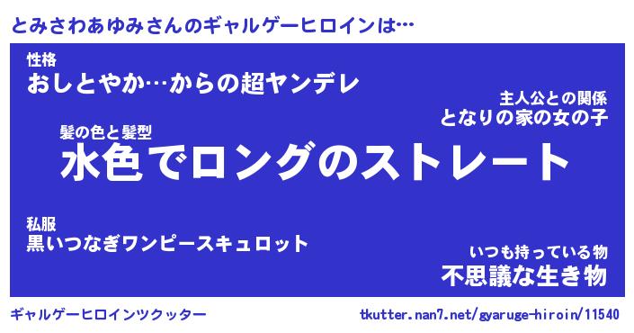 | 男性向けラノベタイトル風あだ名 | 『とみさわあゆみの憂鬱』 |
