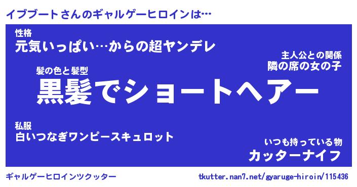 | 男性向けラノベタイトル風あだ名 | 『イブブートの憂鬱』 |